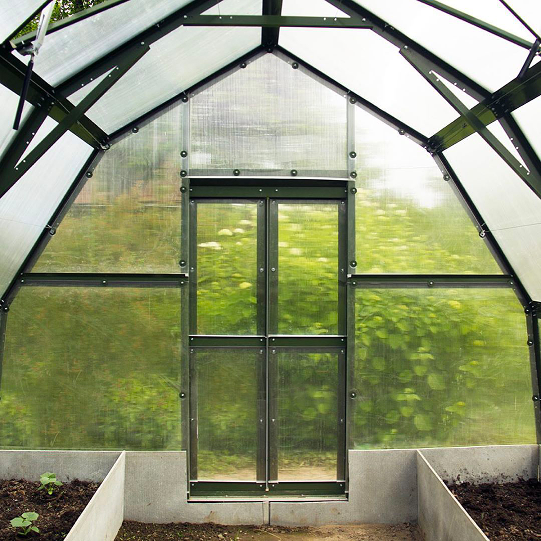 Преимущественное отличие этой садовой теплицы – её увеличенная высота, которая позволяет выращивать практически любые, даже высокорослые, садовые культуры. Ширина модели АРКТИКА с легкостью дает возможность разместить три ряда полноценных грядок. Высокая прочность каркаса способна выдержать обильные снегопады и сильные ветровые нагрузки.