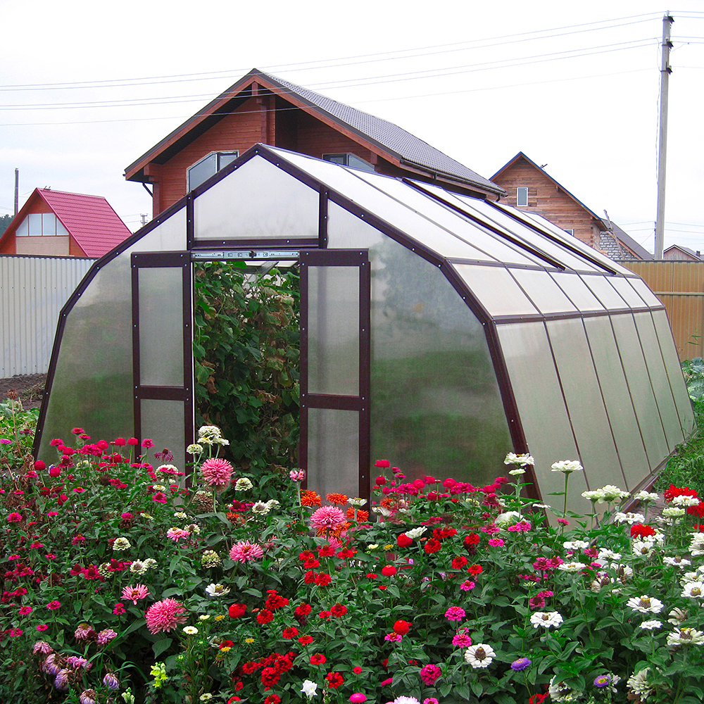 Модель теплицы РЯБИНА наилучшим образом подходит для дачных участков от 6 до 10 соток и в отличие от стандартных садовых теплиц, имеет несколько увеличенную ширину и высоту, что значительно расширяет объем полезного пространства. Поликарбонат до 10 мм максимально эффективно сохраняет температуру внутри, что особенно актуально для северных регионов.
