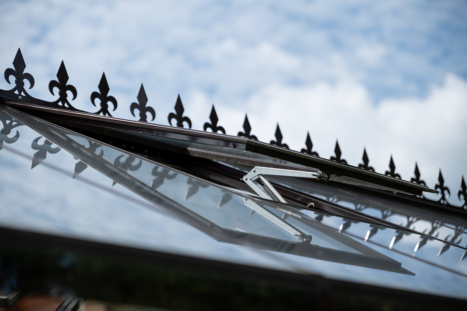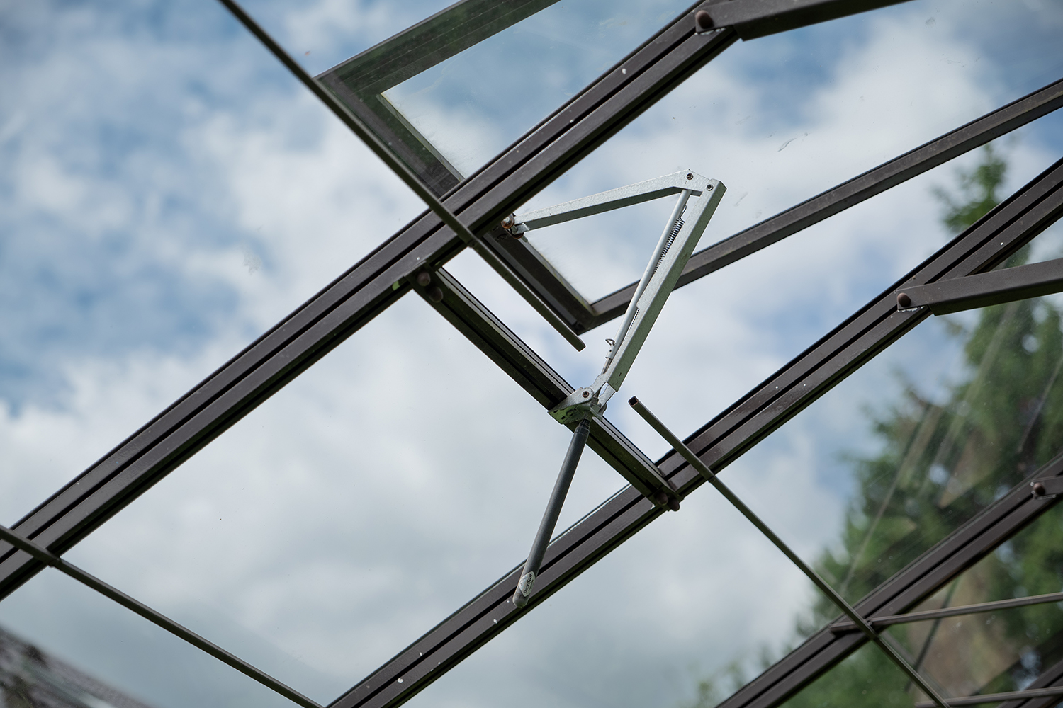 Боковое размещение входа формирует более гибкую планировку и удобную логику использования пространства. Такое решение упрощает зонирование внутри и делает перемещение более естественным, позволяя органично вписать теплицу в участок и создать продуманную и комфортную рабочую среду.
