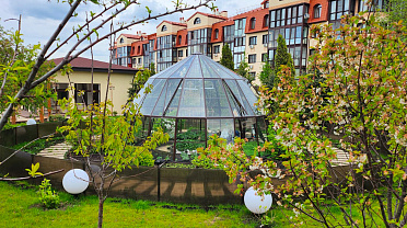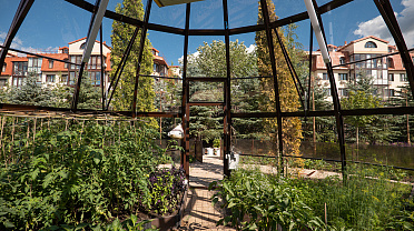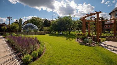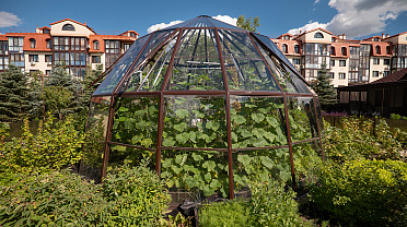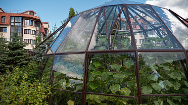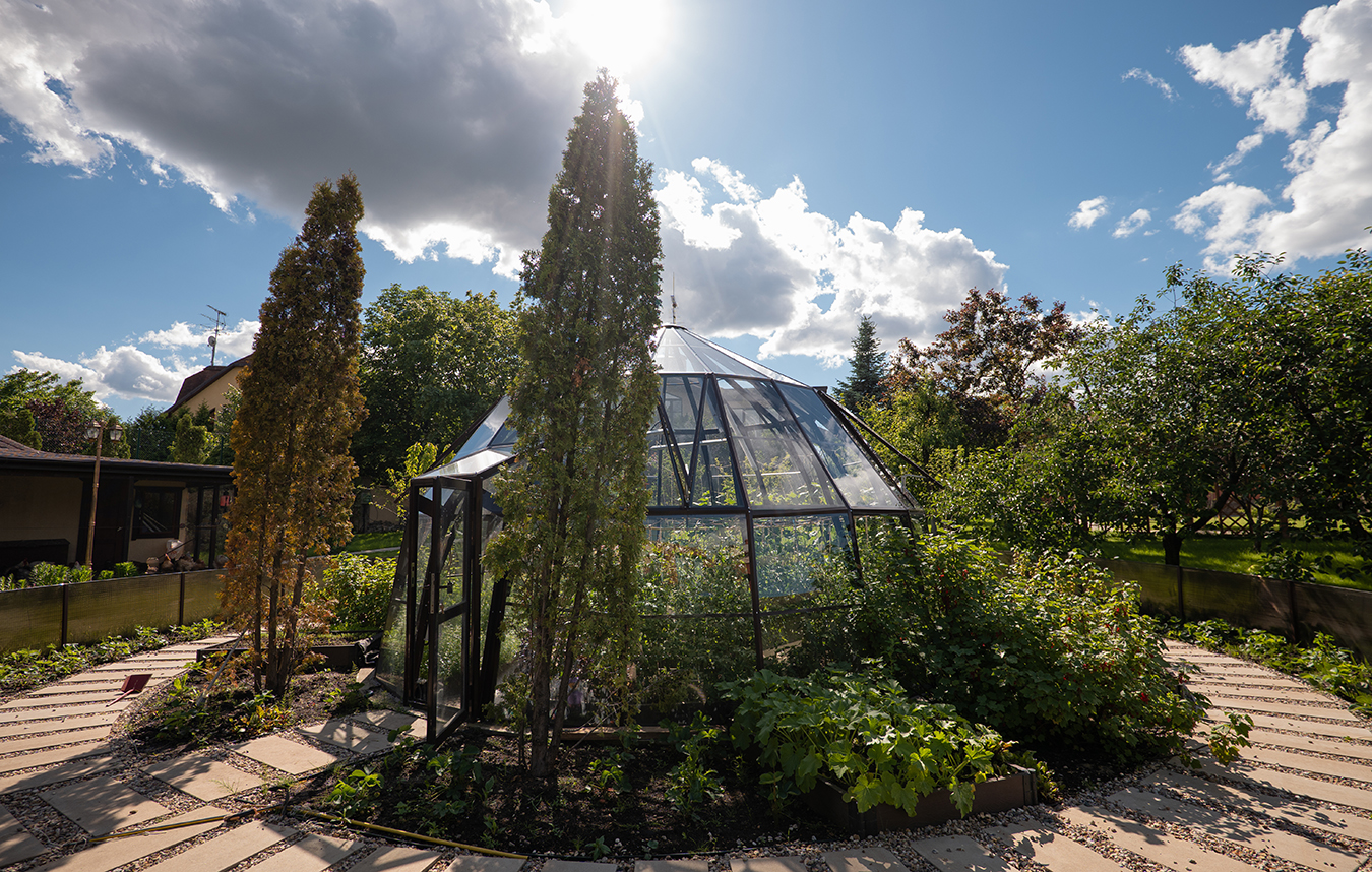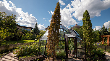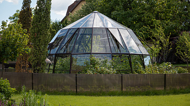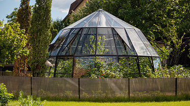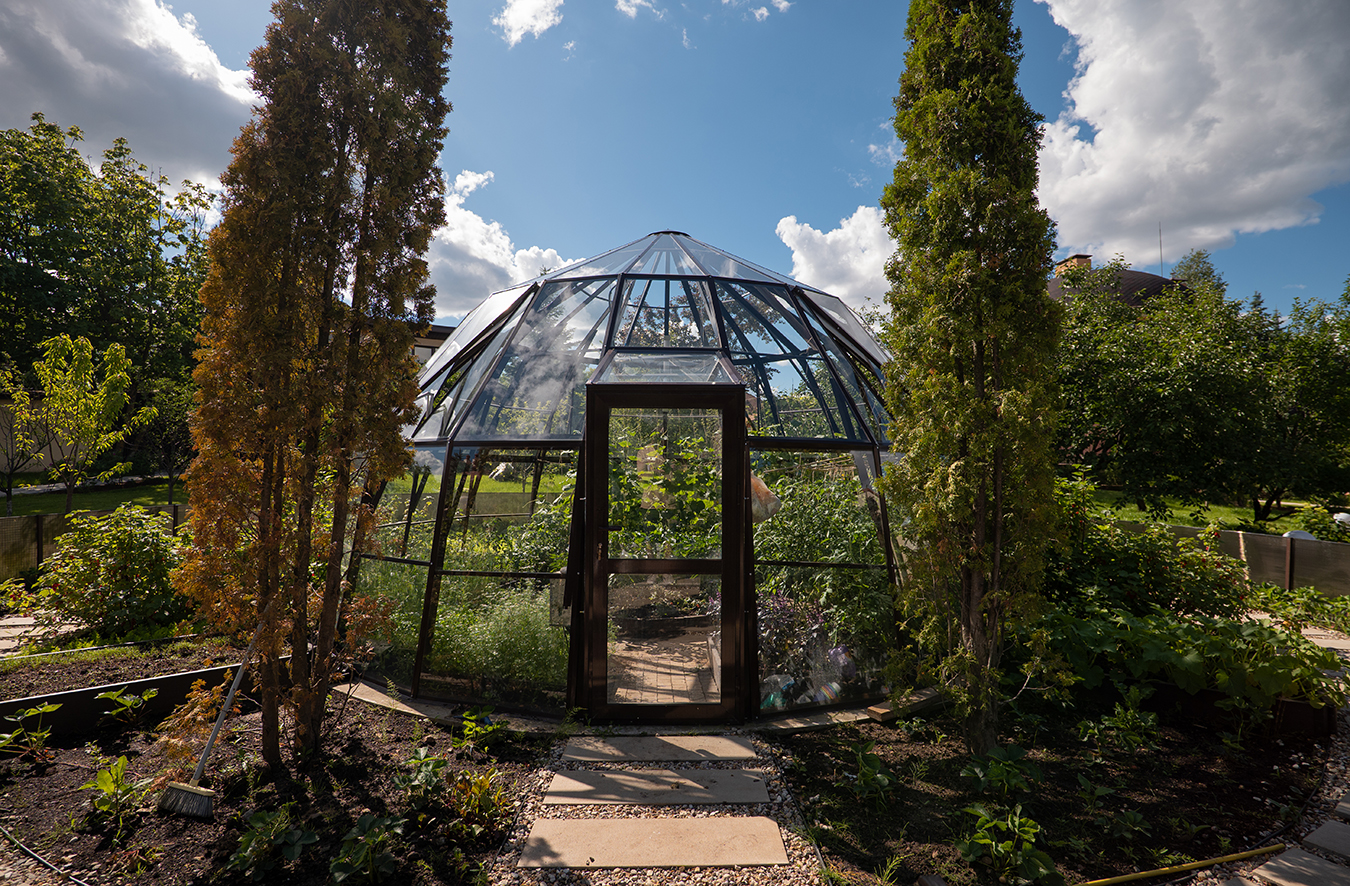 Эксклюзивное решение с акцентом на пространство и архитектуру. Оранжерея формирует выразительную доминанту участка, объединяя функциональность и визуальную лёгкость, а продуманная геометрия создаёт ощущение масштаба и открытого объёма внутри.