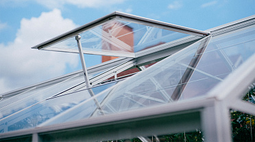 Теплица в белом исполнении – светлое и чистое решение с акцентом на аккуратную архитектуру участка. Цвет подчёркивает лёгкость формы и делает её выразительным элементом пространства, создавая ощущение порядка и визуальной гармонии.