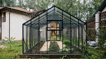 Теплица БИОНИКА Оптима – увеличенная ширина и ощущение простора внутри. Пространство спроектировано с акцентом на свободу движения и комфорт, а чистая геометрия и лёгкость форм создают выразительный архитектурный акцент на участке.