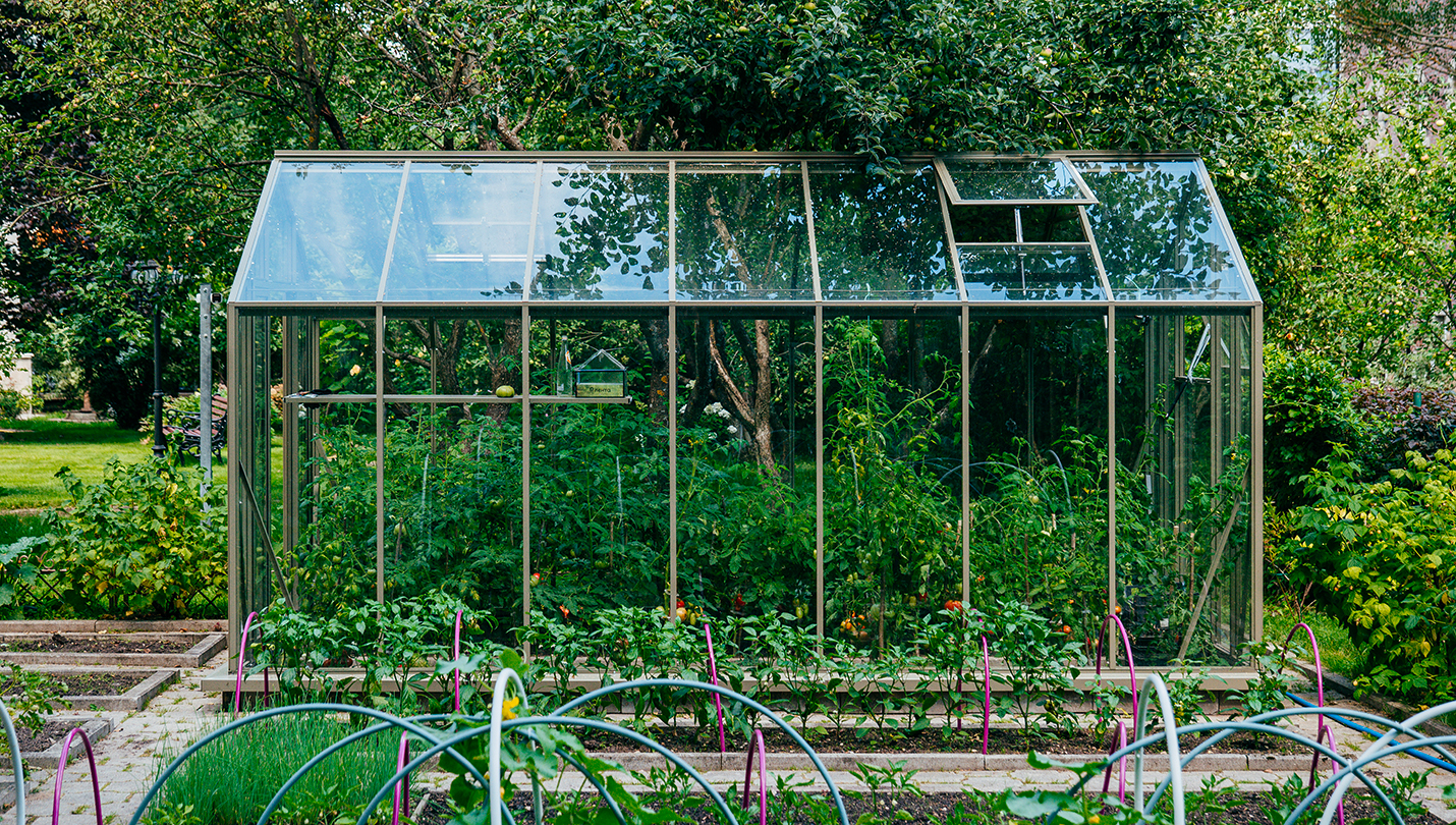 Теплица БИОНИКА Комфорт – выразительный акцент участка в природной цветовой гамме. Глубокий оливковый оттенок подчёркивает связь с ландшафтом, мягко интегрируя теплицу в окружение и создавая ощущение гармонии с природой.