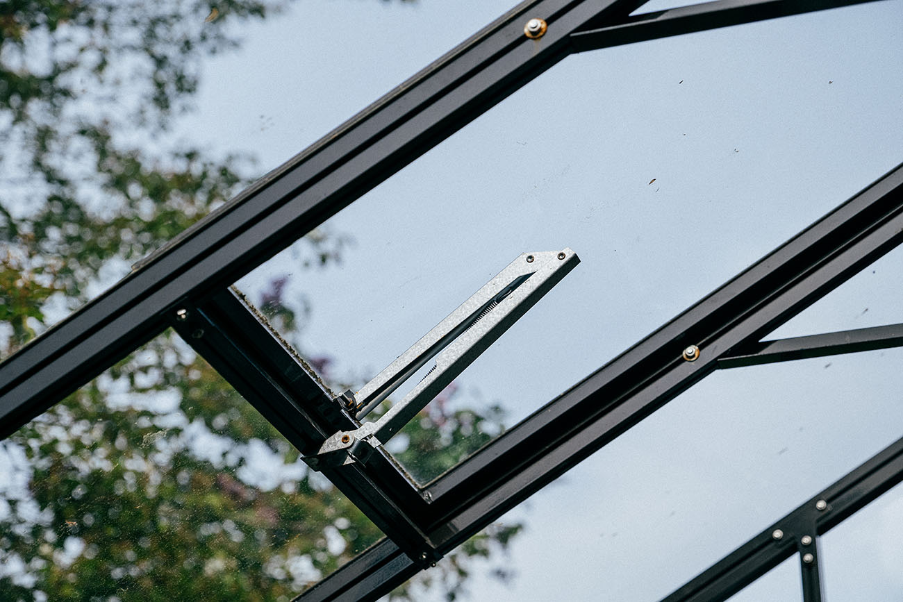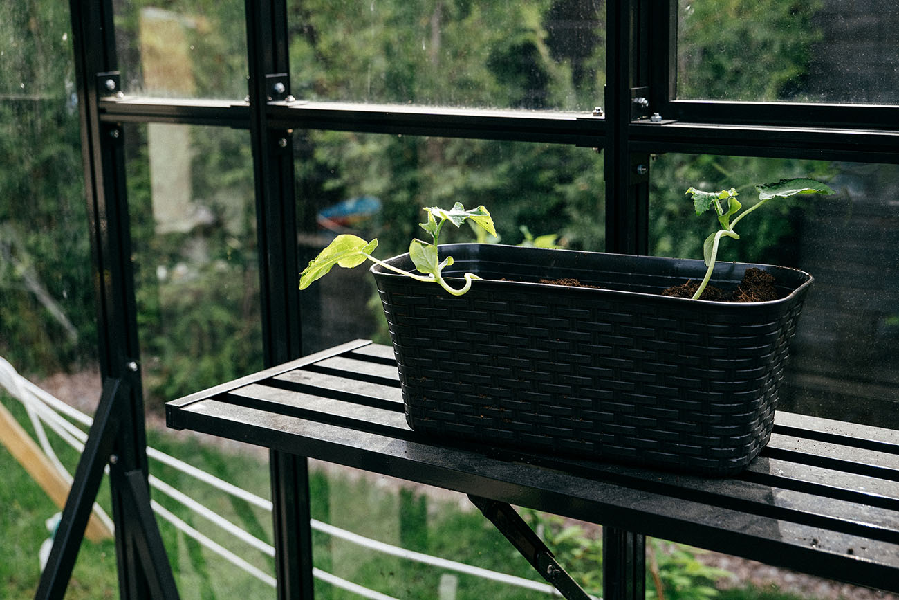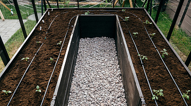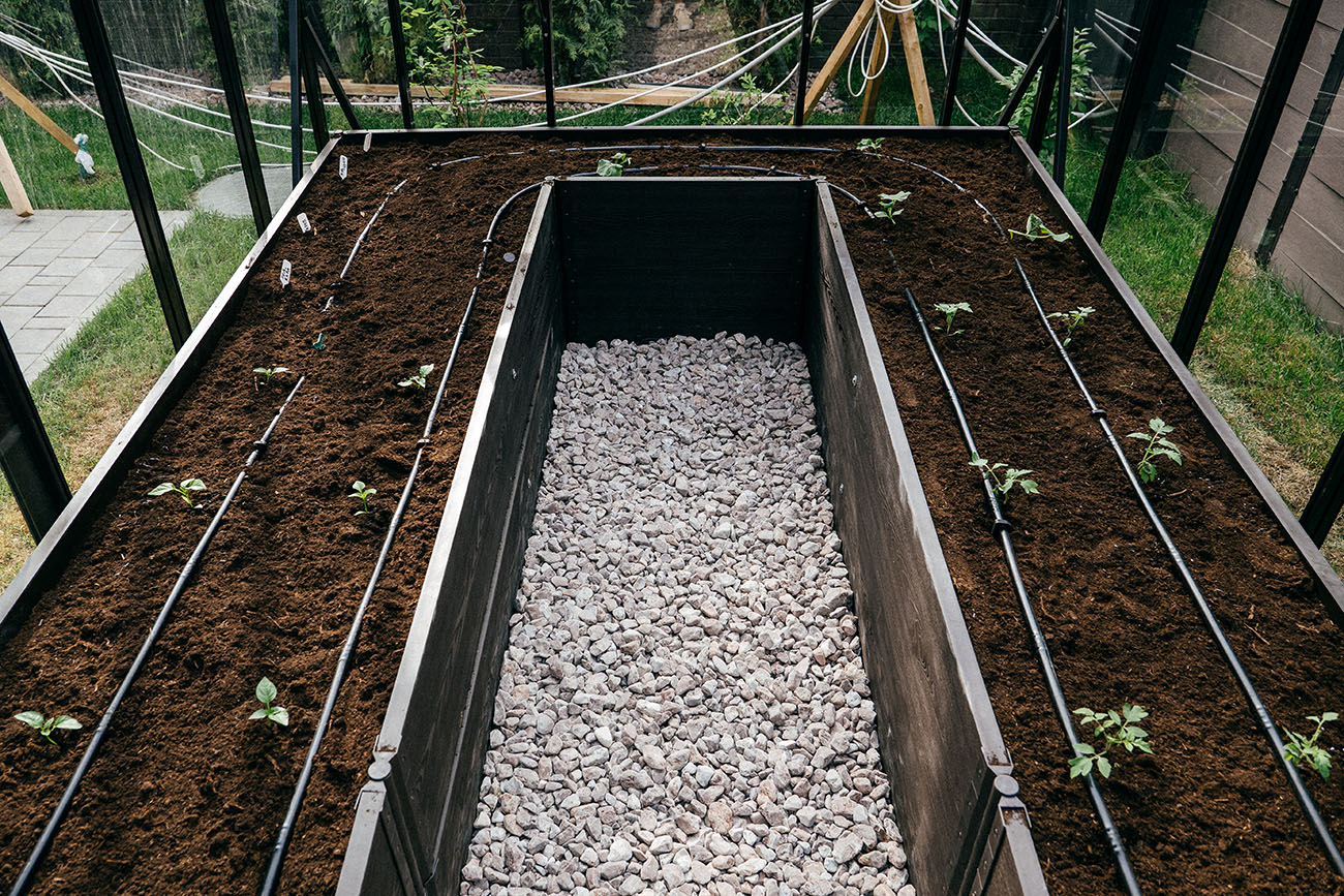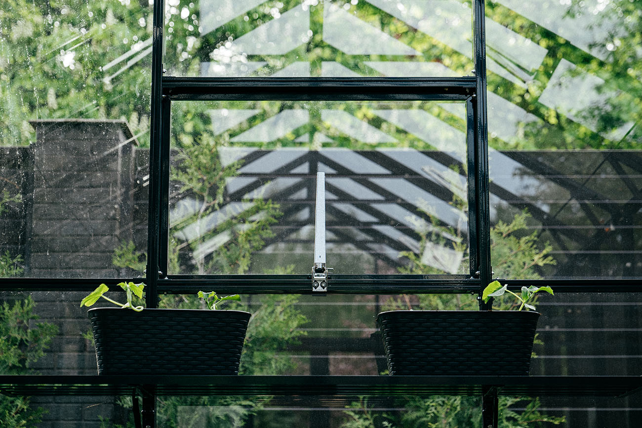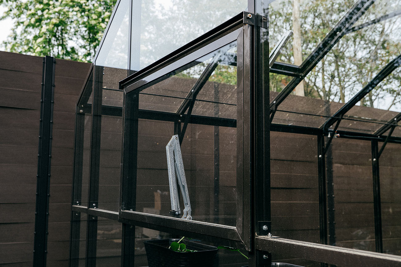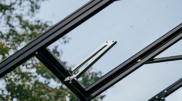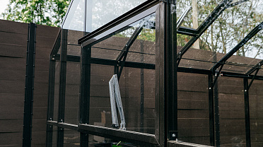 Теплица БИОНИКА Комфорт с боковым входом на участке Ольги Орловой – сочетание архитектурной эстетики и продуманной функциональности. Конструкция из стекла и алюминия органично вписалась в пространство, сохранив лёгкость и аккуратную геометрию, а боковой вход делает использование теплицы максимально удобным.
