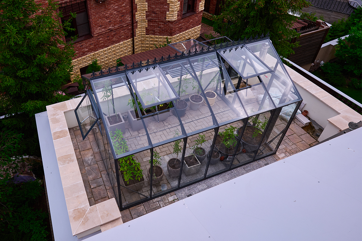 Размещение на крыше – нестандартное решение, интегрированное в архитектуру здания. Проект формирует выразительное пространство на высоте, где функциональность сочетается с визуальной лёгкостью и точной проработкой деталей.