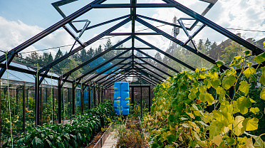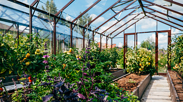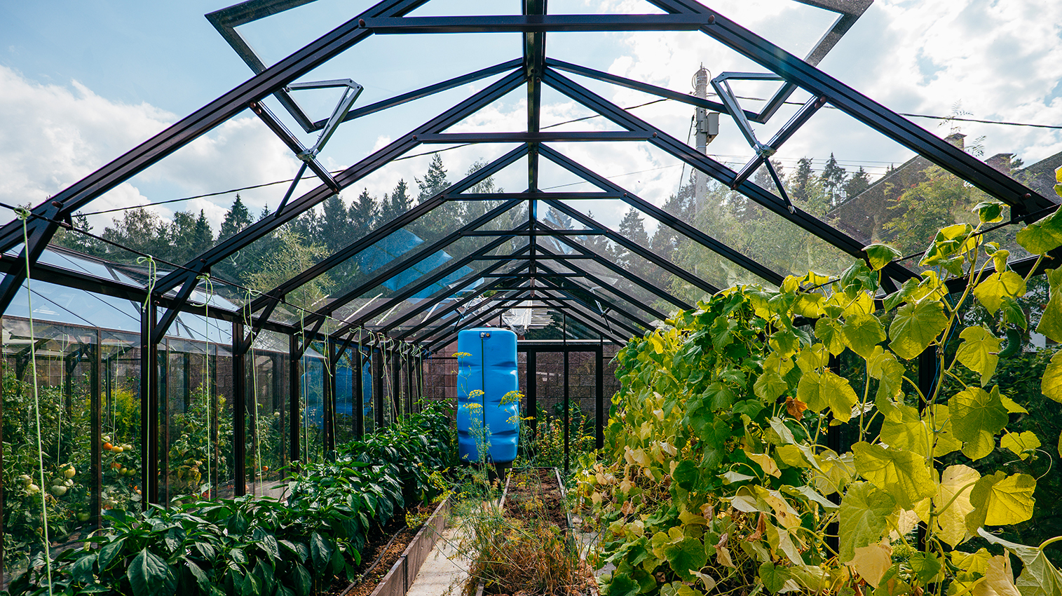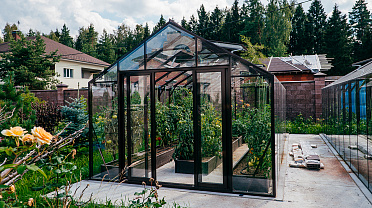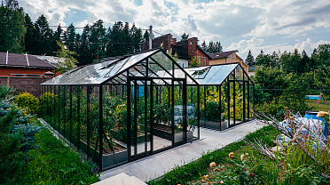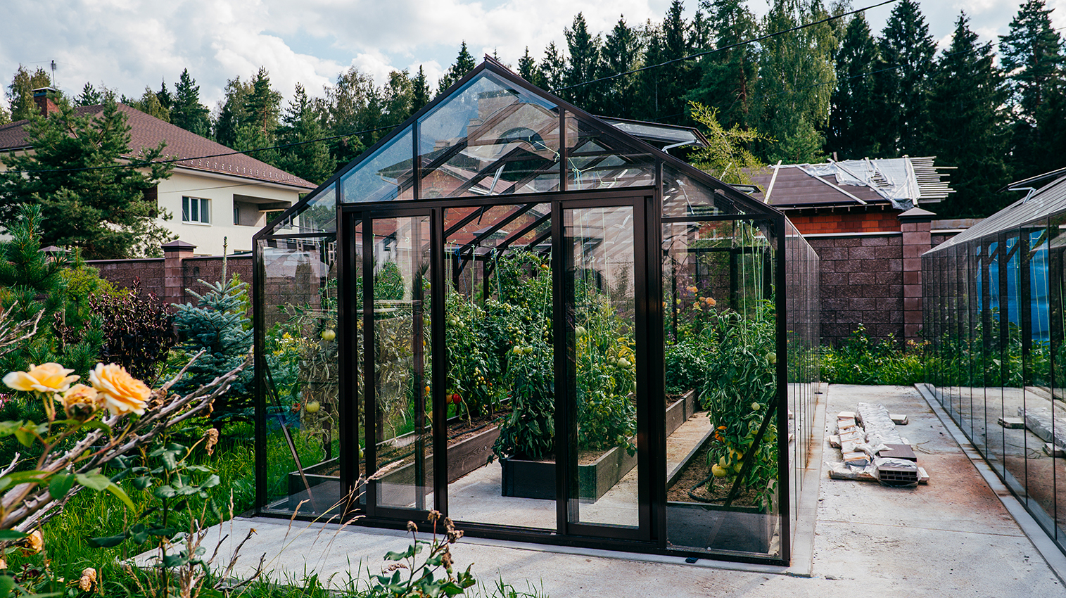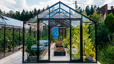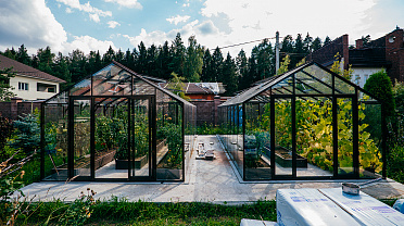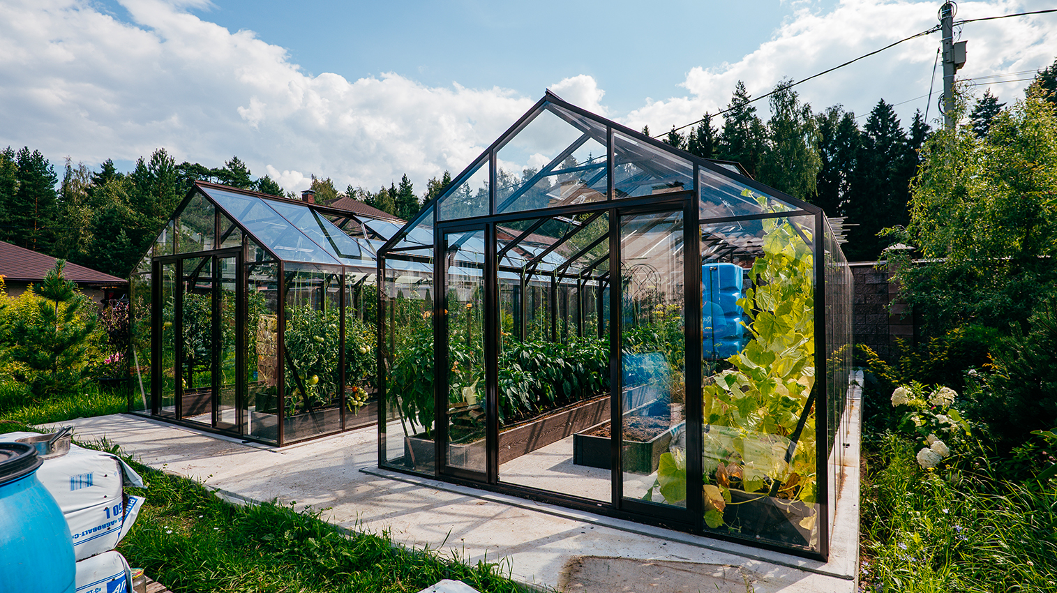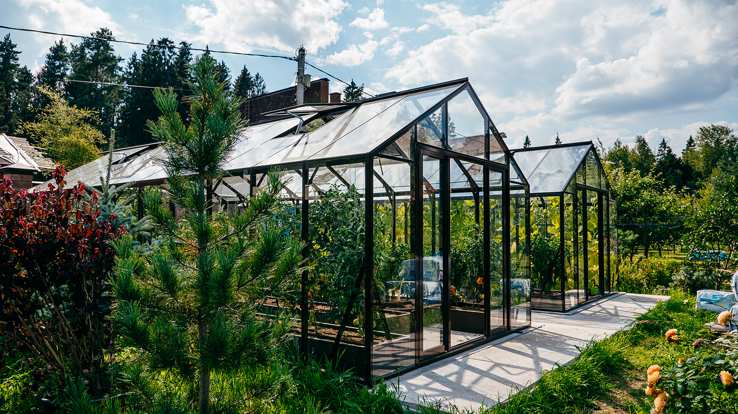 Два отдельных пространства позволяют удобно разделить культуры и режимы выращивания. Такое решение делает использование участка более гибким и продуманным, сохраняя лёгкость восприятия и целостность архитектуры.