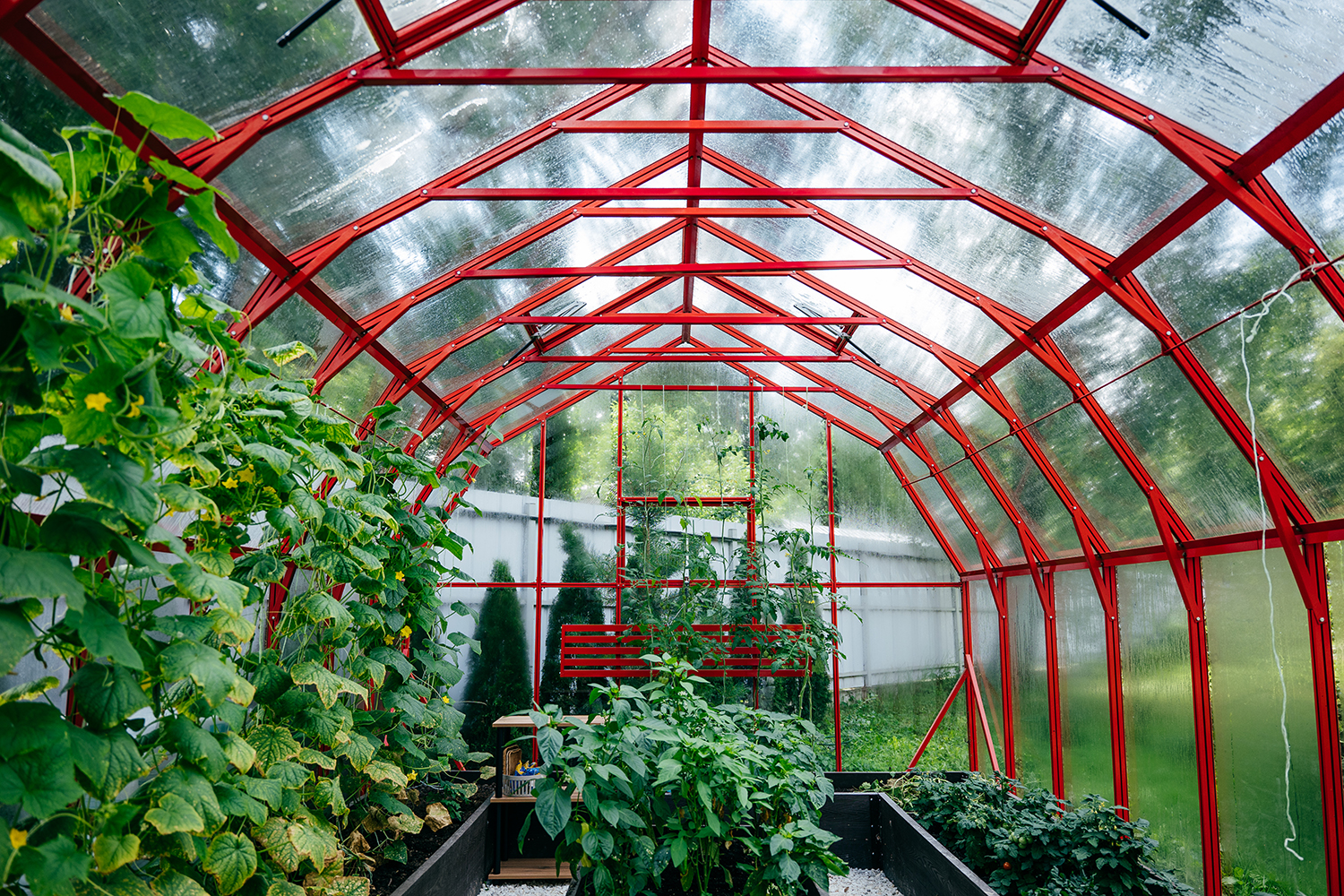 КРИСТАЛИКА легко справляется с повышенными снеговыми и ветровыми нагрузками в зимний период и эффективно поддерживает оптимальный микроклимат летом. Оригинальная форма конструкции и продуманная система вентиляции позволяют комфортно эксплуатировать теплицу, наслаждаясь любимым хобби!