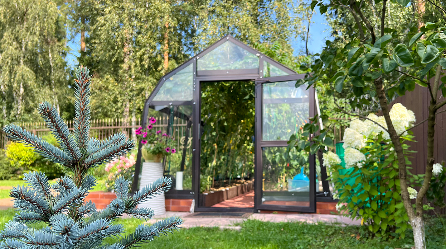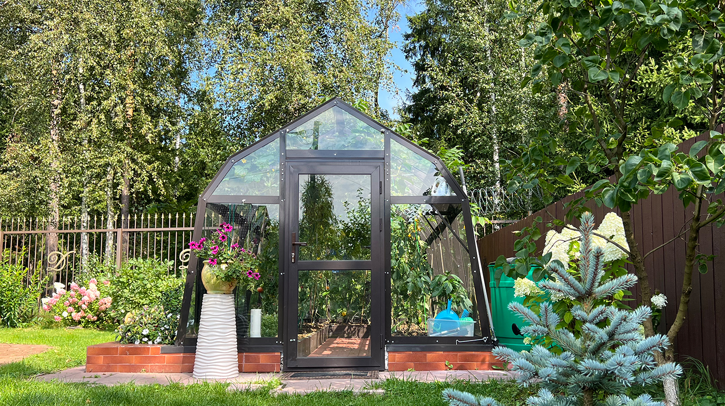 Компактное решение для рассады и небольшого участка с акцентом на удобство в работе. Несмотря на аккуратные размеры, внутри сохраняется комфортное пространство и достаточная высота, позволяя свободно работать и выращивать разные культуры.
